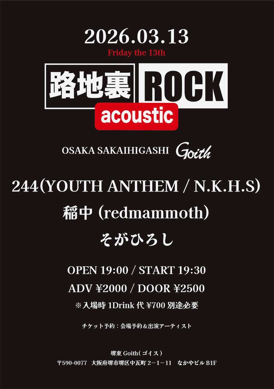 - * ご入場の際、別途ドリンク代を頂きます。ご了承ください。